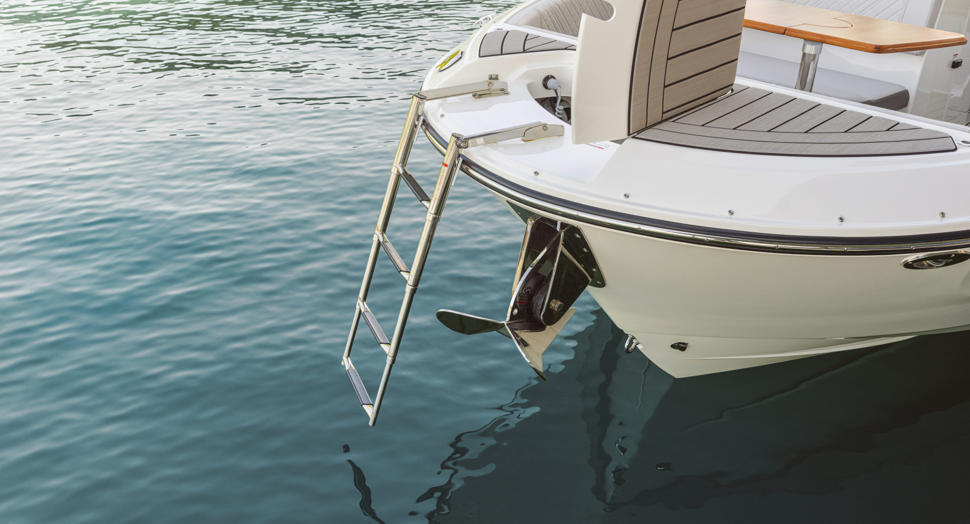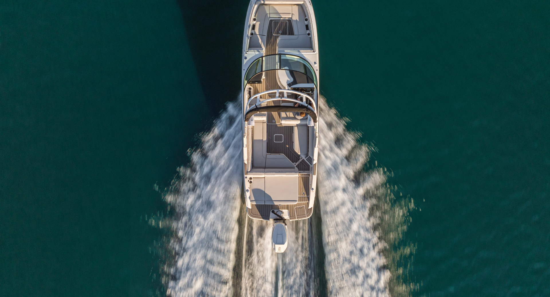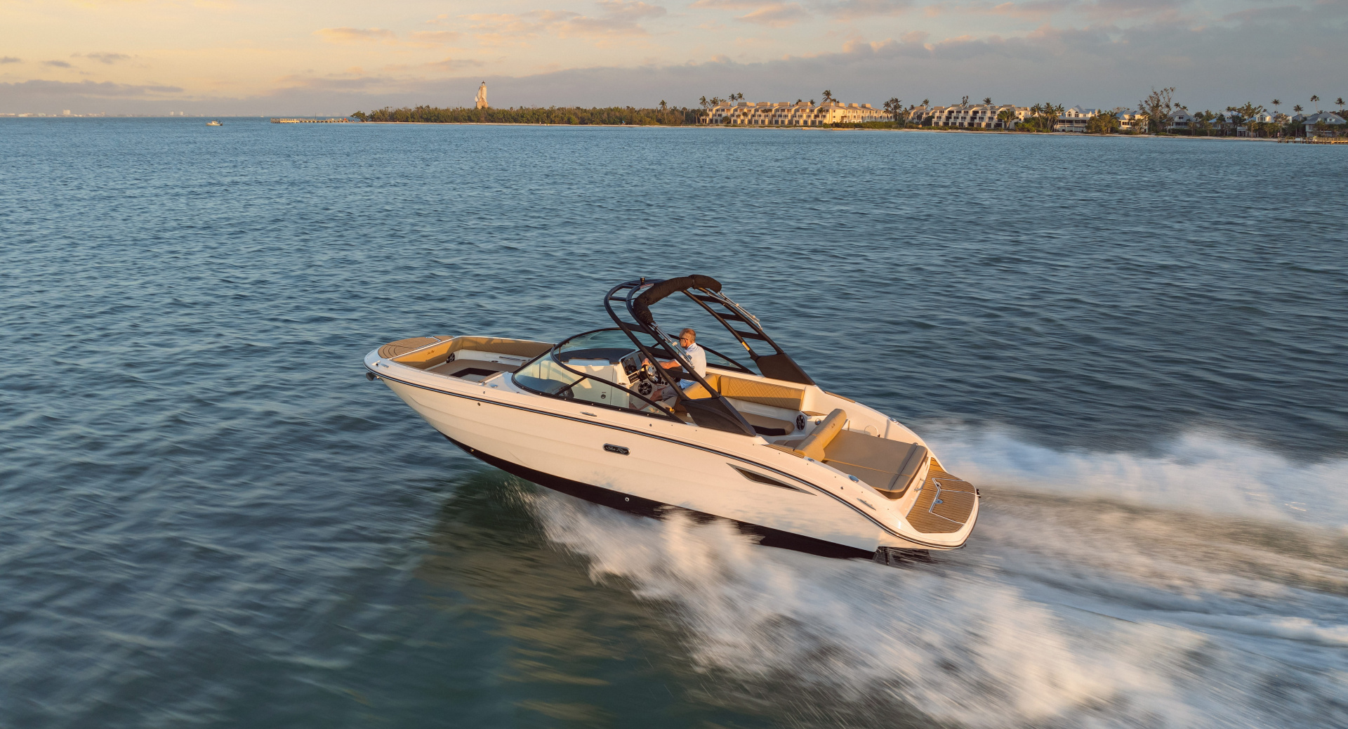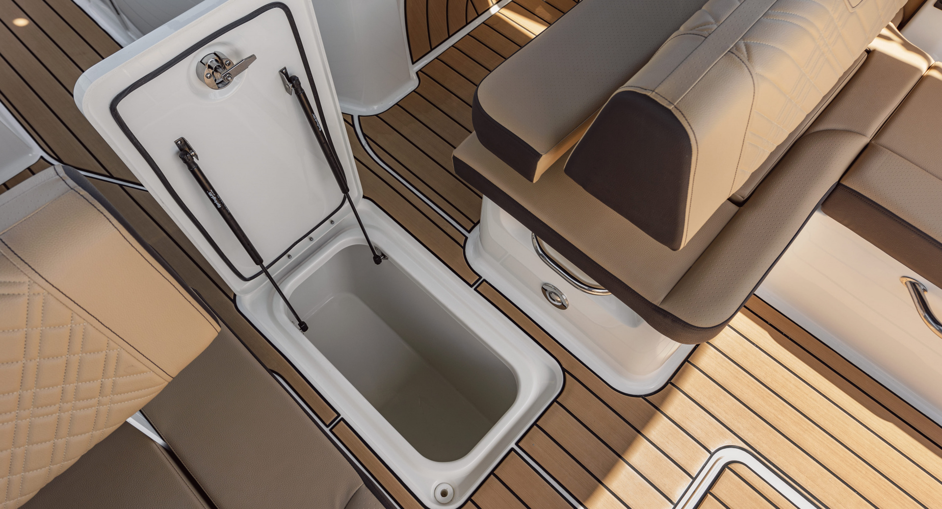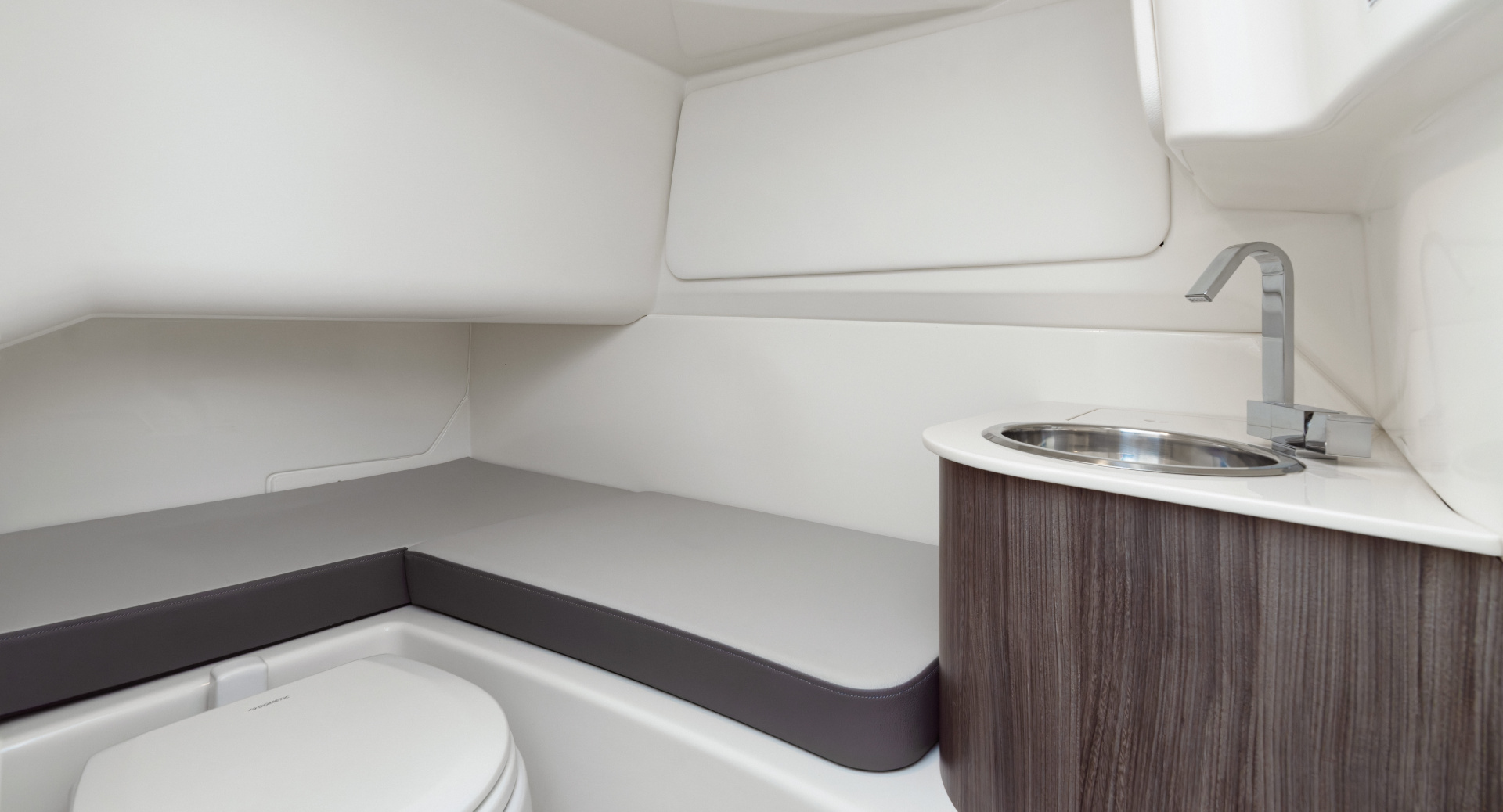 Настоящий плавучий пляж благодаря своей ширине. Кормовой диван с изменяемой геометрией просто огромный! На диванах вокруг центрального стола может разместиться до 12 пассажиров. Отлично организована зона отдыха в носовой части катера. Если в жаркую погоду боитесь обгореть, можно спрятаться под увеличенным солнечным чехлом, крепящимся на жёсткую башню для вейкбордиста. От дождя Вас защитят крепящиеся к солнечному чехлу боковые прозрачные шторки. В каюте SDX 270 есть собственный санузел с полноценным электрическим туалетом и мойкой.