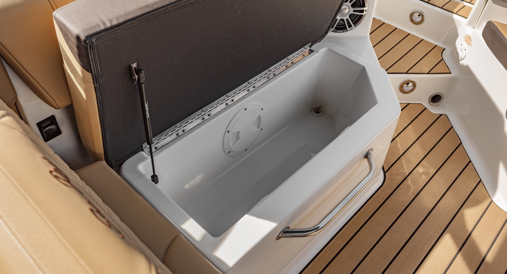 | Большой рундук в палубе для водных лыж или вэйкборда, матовое покрытие стеклопластика внутри, виниловый коврик на днище рундука, газовый амортизатор крышки рундука | |||||