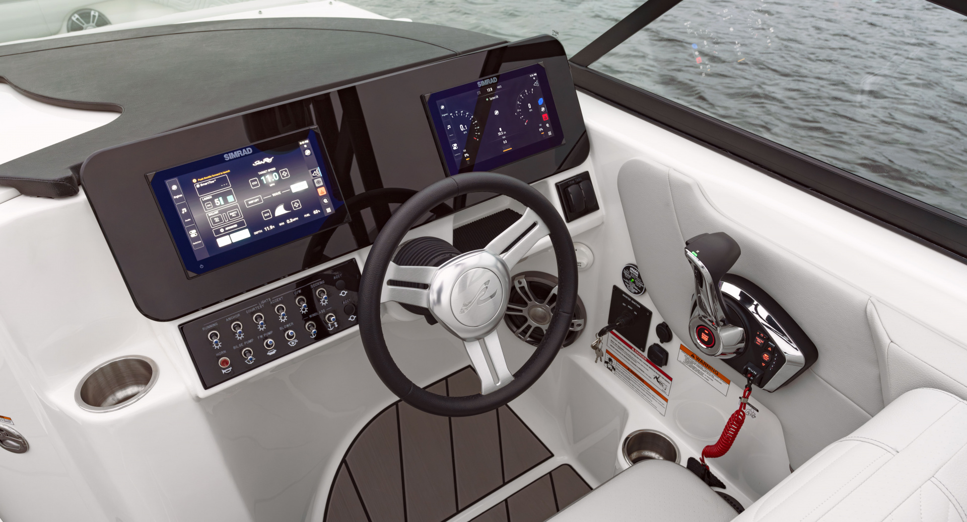| Приборы SmartCraft®: спидометр, тахометр, уровень топлива, напряжение сети, уровень трима, температура. Оригинальные приборы Sea Ray, совместно со SmartCraft, изготовлены со специальными линзами. Синяя подсветка, хромированный безель колодца приборов. | |||||